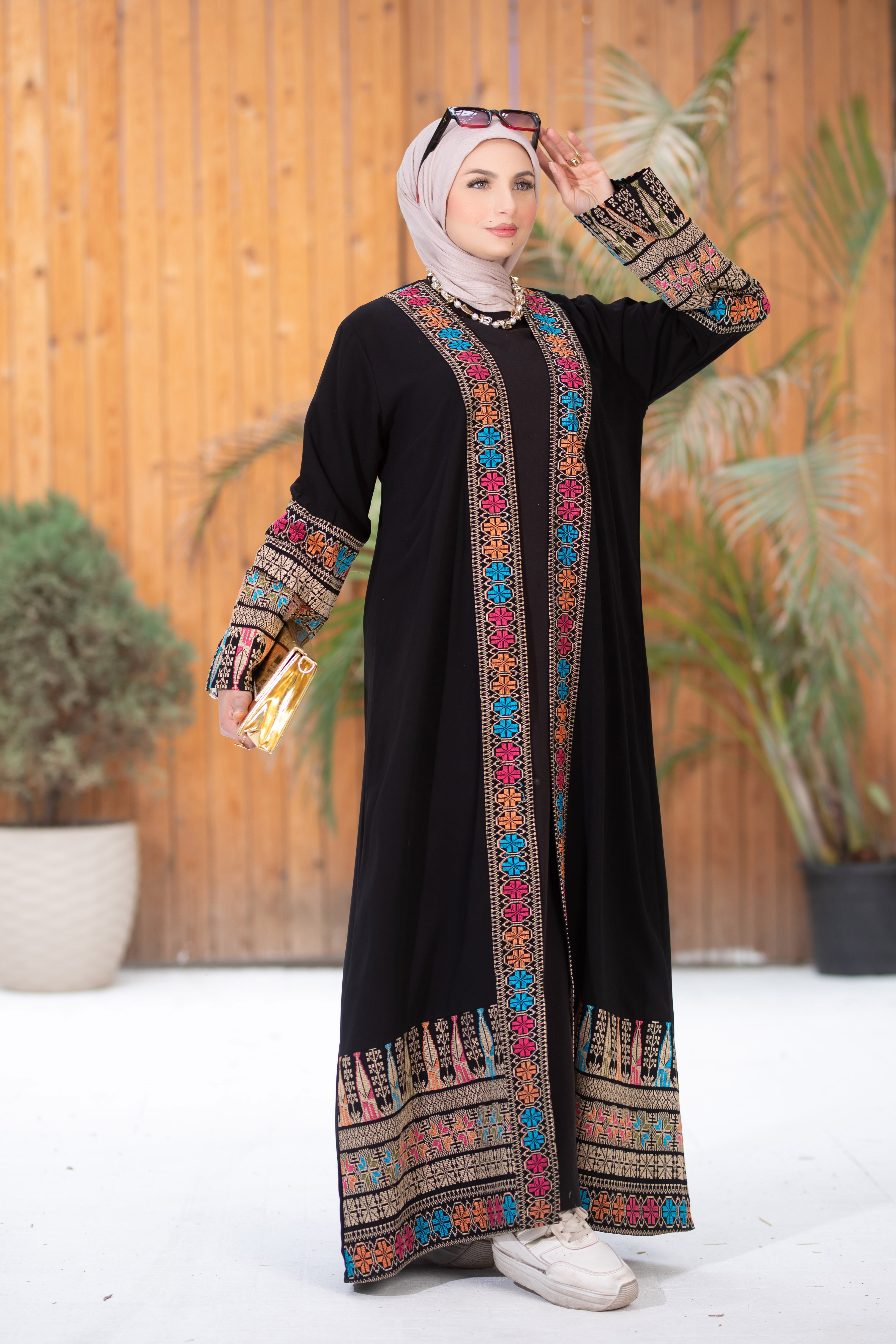 بشت إيتامين بتطريز فخم وألوان بتتكلم عن نفسها، خامة كريب سعودي تقيل ومش شفاف، يعني مش هتلبسي قطع كتير وهتباني شيك بقطعة واحدة ساترة وناعمة.ده مش مجرد اوتفيت، ده تحفة فنية، مش ناقصها غير أنها تكون في دولابك.