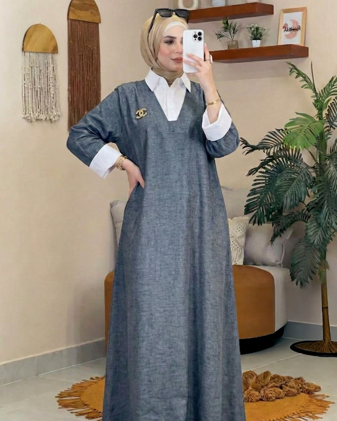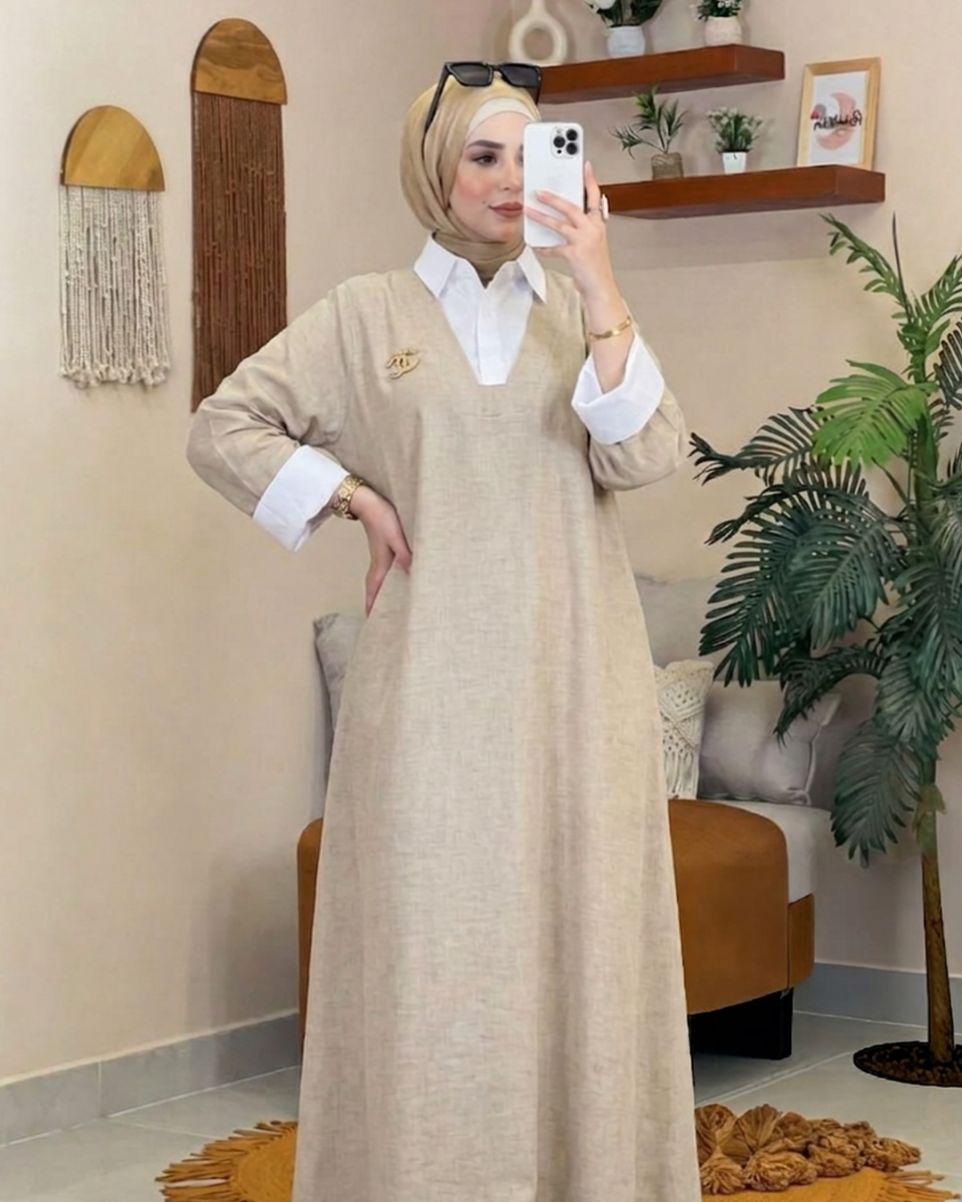 لو بتدوري على لوك شيك ومميز، فالدريس ده هو اختيارك الصح. قصته الواسعة بتديكي راحة وفخامة في الحركة، وخامته الكتان الفرنسي...