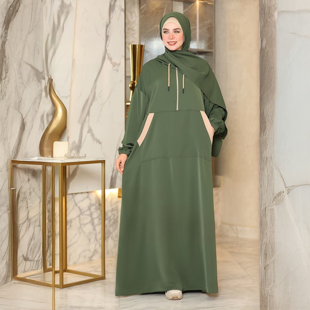 إسدال هيريحك من التفكير! إسدال بهودي ومعاه طرحة جاهزين على اللبس، عملي وأنيق في نفس الوقت، مصنوع من خامة الكريب...