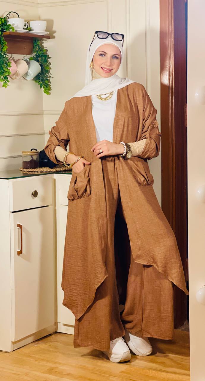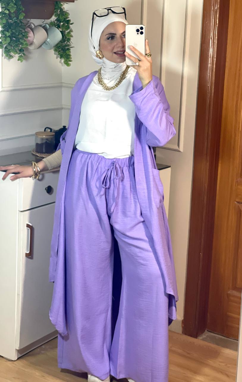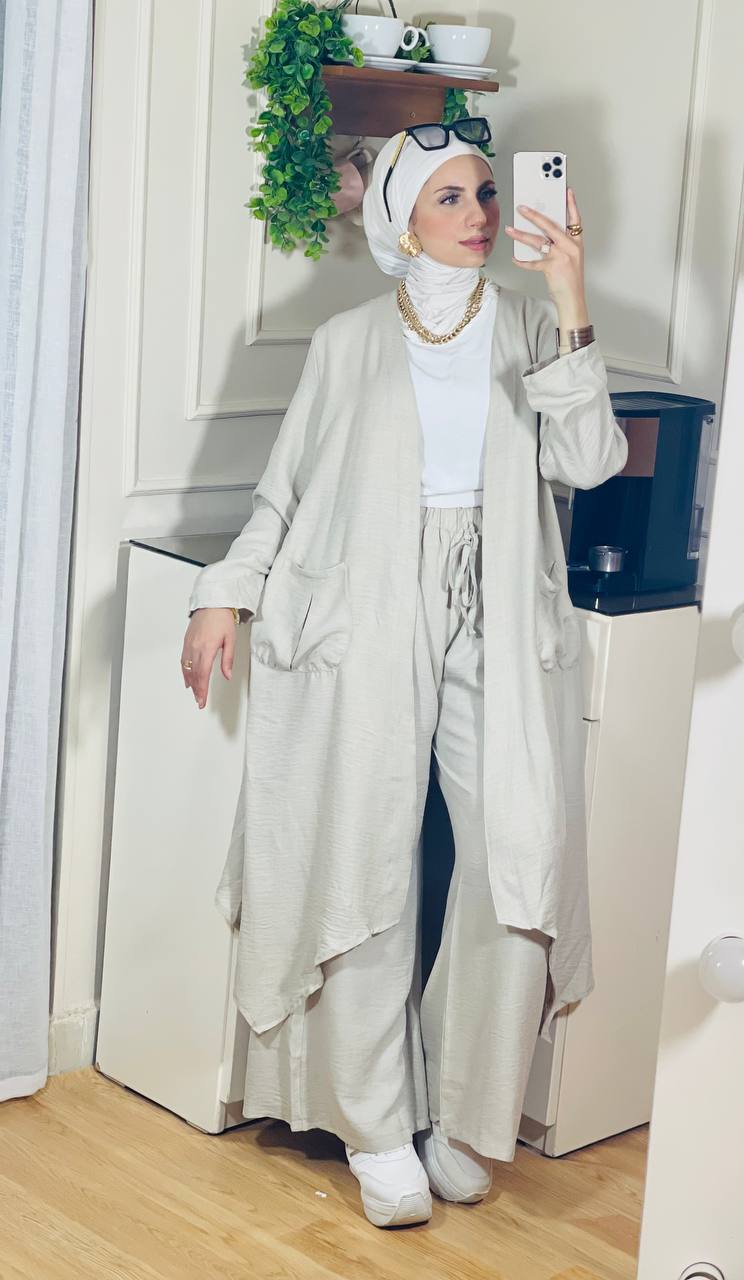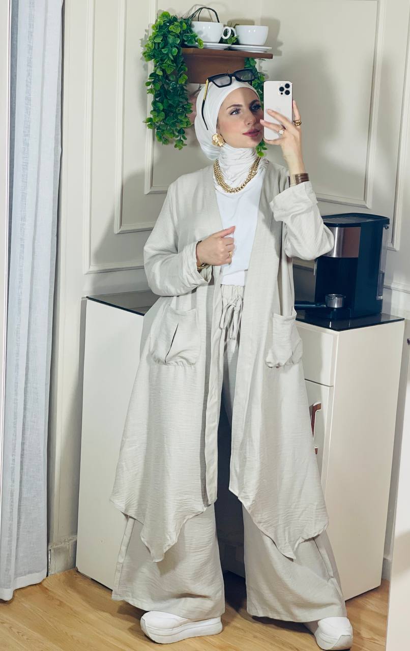 يعن يفضل محافظ على نفسه في اللبس ومريح في تحضيره، كمان معاه الكاردي والبنطلون والتوب عشان تكوني منه كذا ستايل مختلف من نفس الطقم، بخامة كتان فرنسي فاخرة تديكي إحساس شيك وعملي في أي مشوار