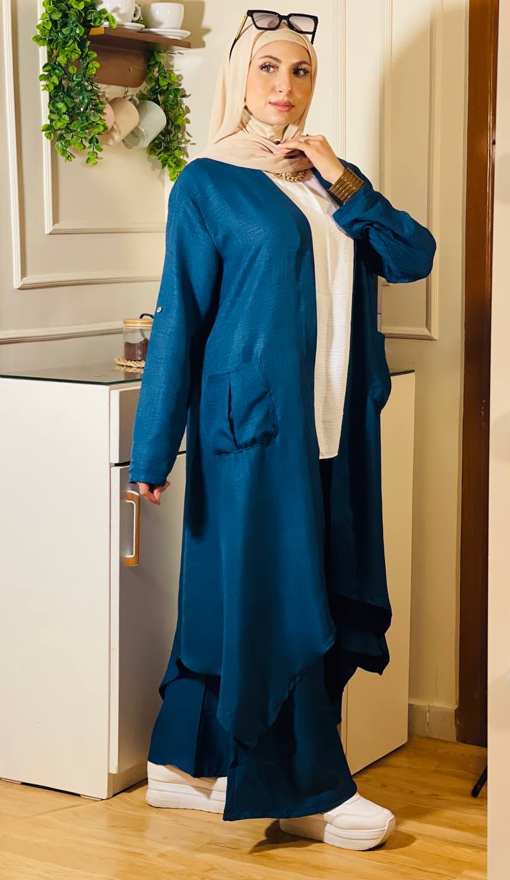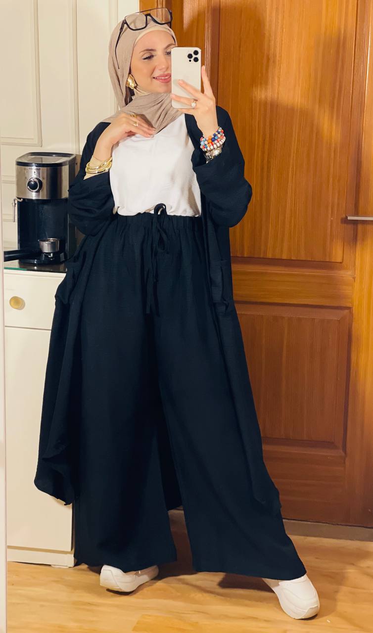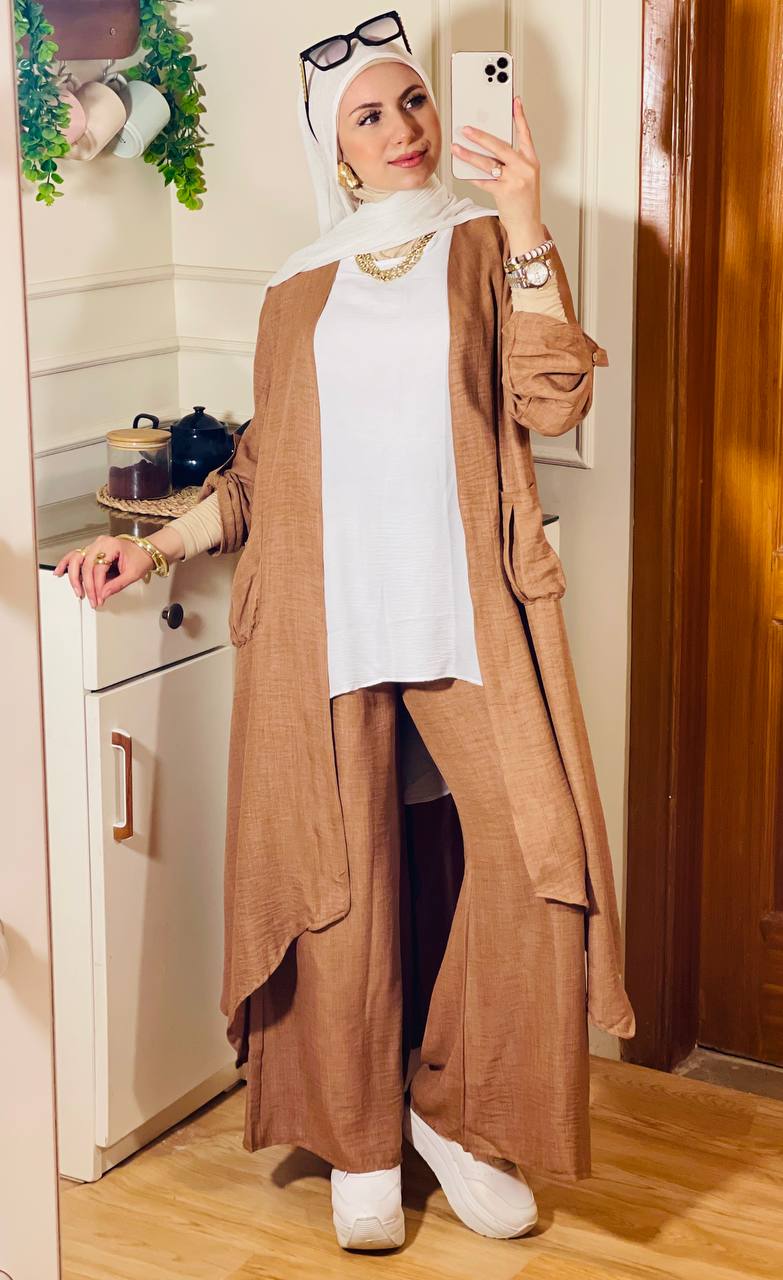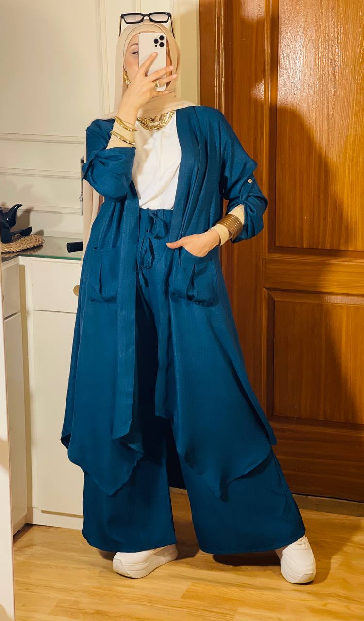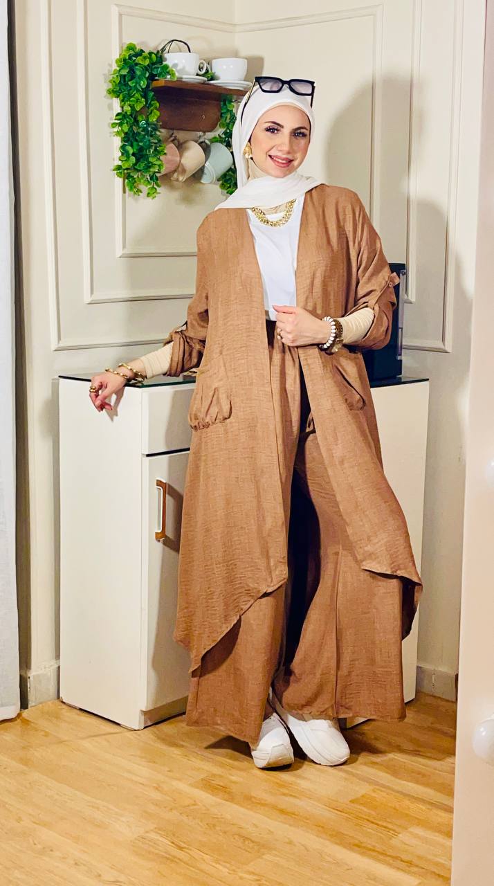 يعن يفضل محافظ على نفسه في اللبس ومريح في تحضيره، كمان معاه الكاردي والبنطلون والتوب عشان تكوني منه كذا ستايل مختلف من نفس الطقم، بخامة كتان فرنسي فاخرة تديكي إحساس شيك وعملي في أي مشوار