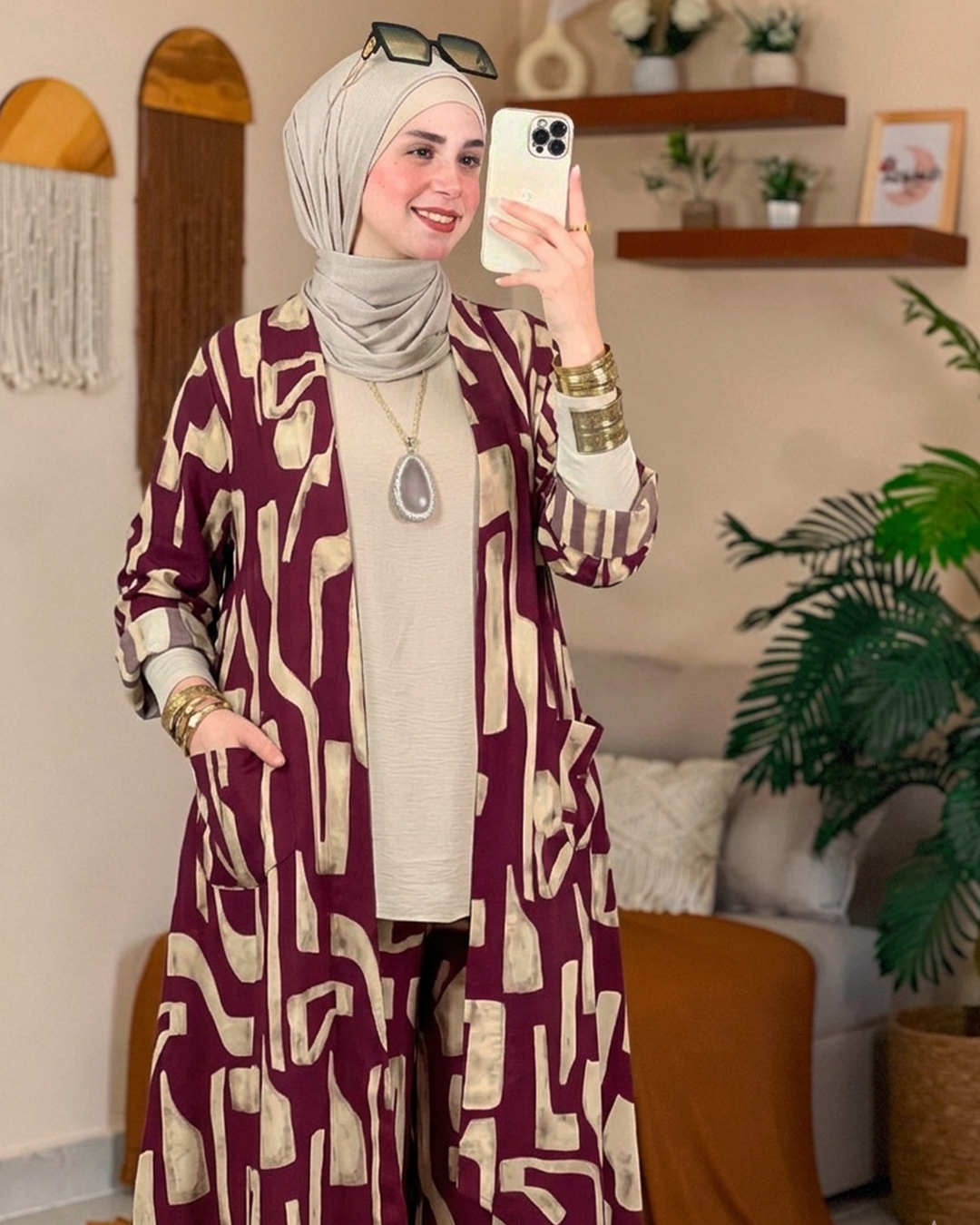 السوت المشجر ده مختلف في كل تفاصيله من الكاردي لحد البنطلون المريح! هتقدري تنسقي كل قطعة لوحدها أو تلبسيهم سوا...